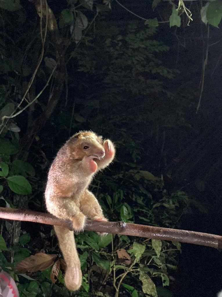 The female silky pygme anteater being released