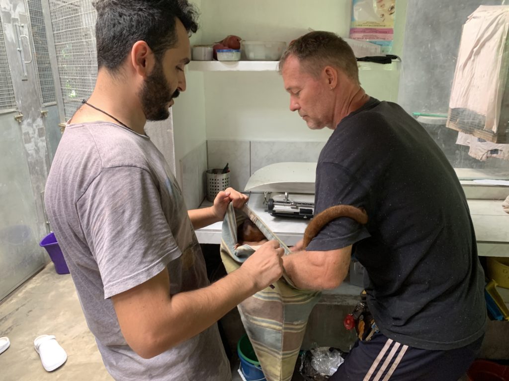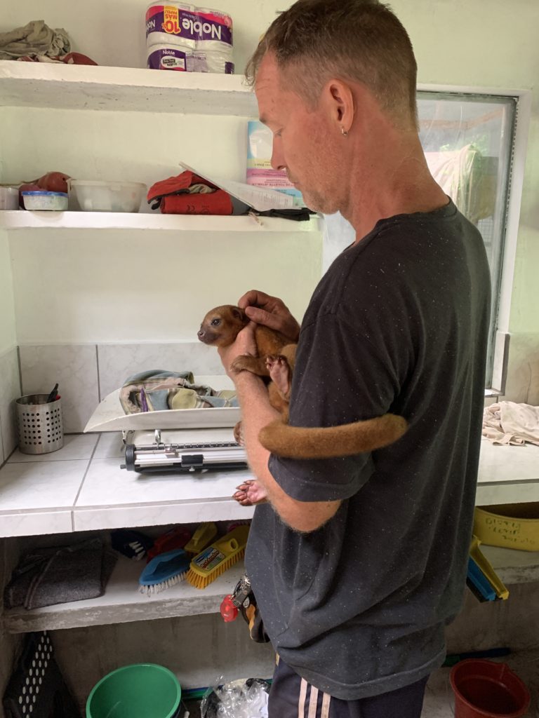 Everybody ‘loves’ surprises, but some are easier to accept than others. While we already had a representative here, we received an unexpected visit from the same Ministry of Fauna and Flora, all of course occurring on an already busy day (both Naka and Payco were receiving their initial treatment). Thankfully Douwe and Olivia along with the new team of volunteers handled the extra pressure well, ensuring all necessary tasks continued as normal as well as checking and placing the new animals into their enclosures. With the SUSTOAH already full we were highly appreciative of the fact that the quarantine, generously funded by the foundation Jaap van de Graaf from The Netherlands, was completed.