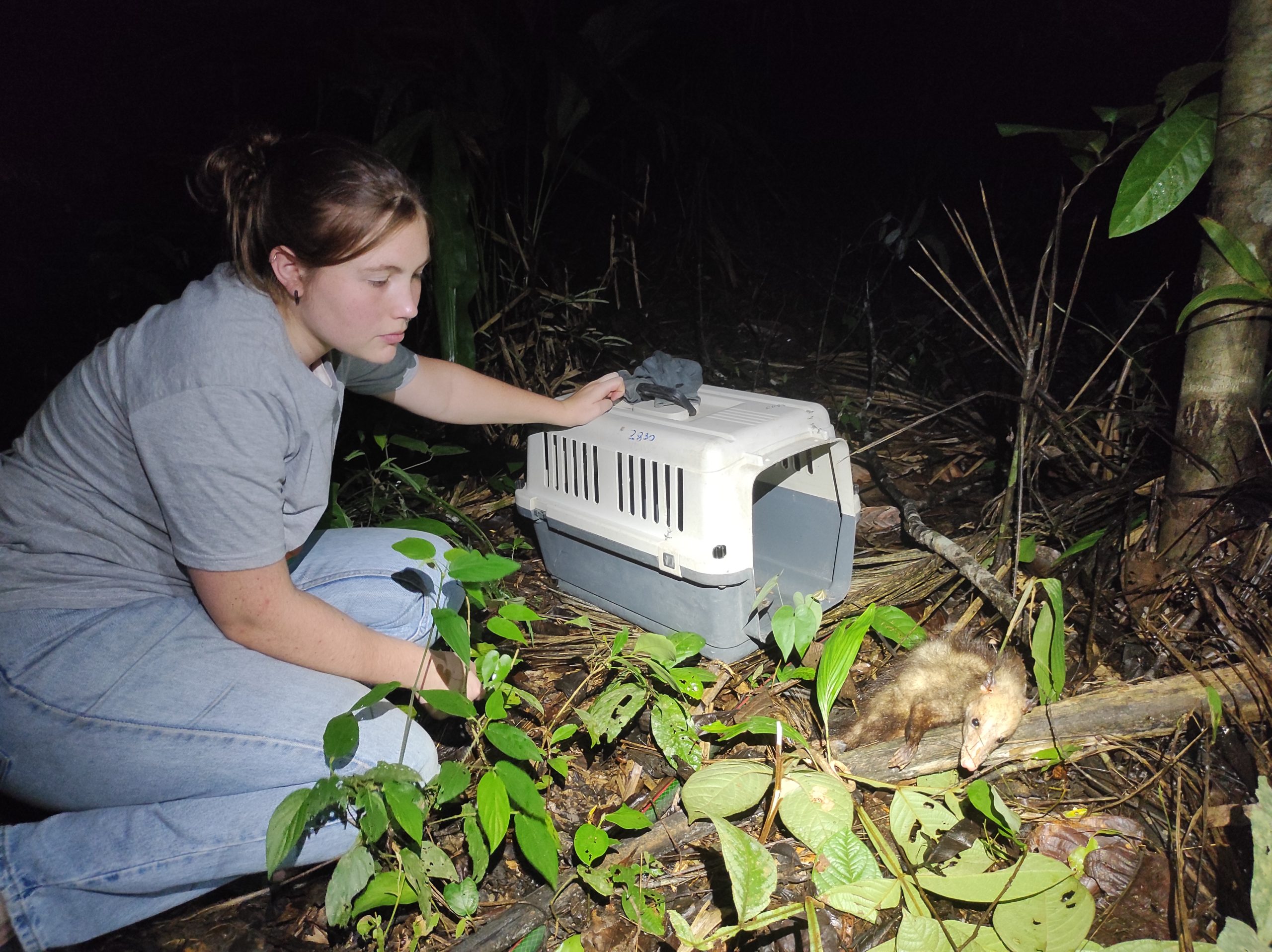 Volunteer Marion watching the release of the opposums