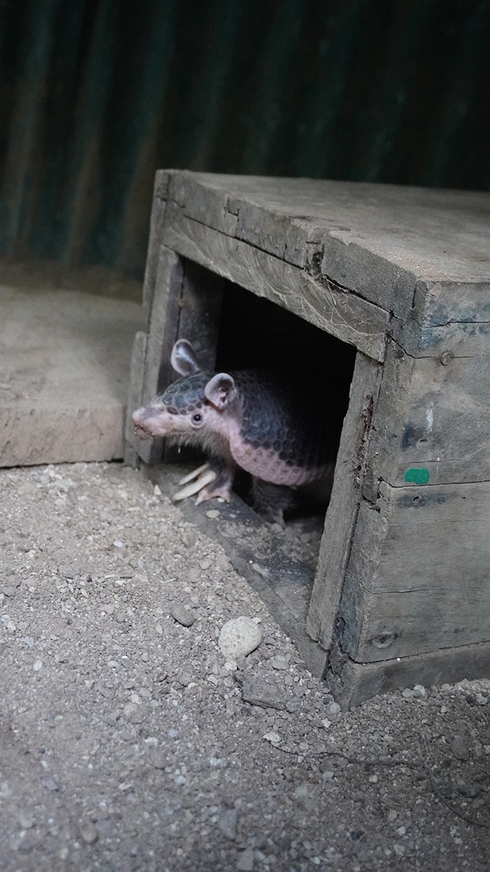 The family house has been quieter since Caucho, the giant river otter, moved on to a new chapter in his life at Taricaya Eco Reserve. But, as always, the calm doesn’t last long. Maya, a juvenile female howler monkey, and Saphira, a young two-fingered sloth, were taken in for intensive care. Meanwhile, Lamber, the naked-tailed armadillo, Lamber, is enjoying some new privileges at the family house, spending more time outside in a small garden enclosure.