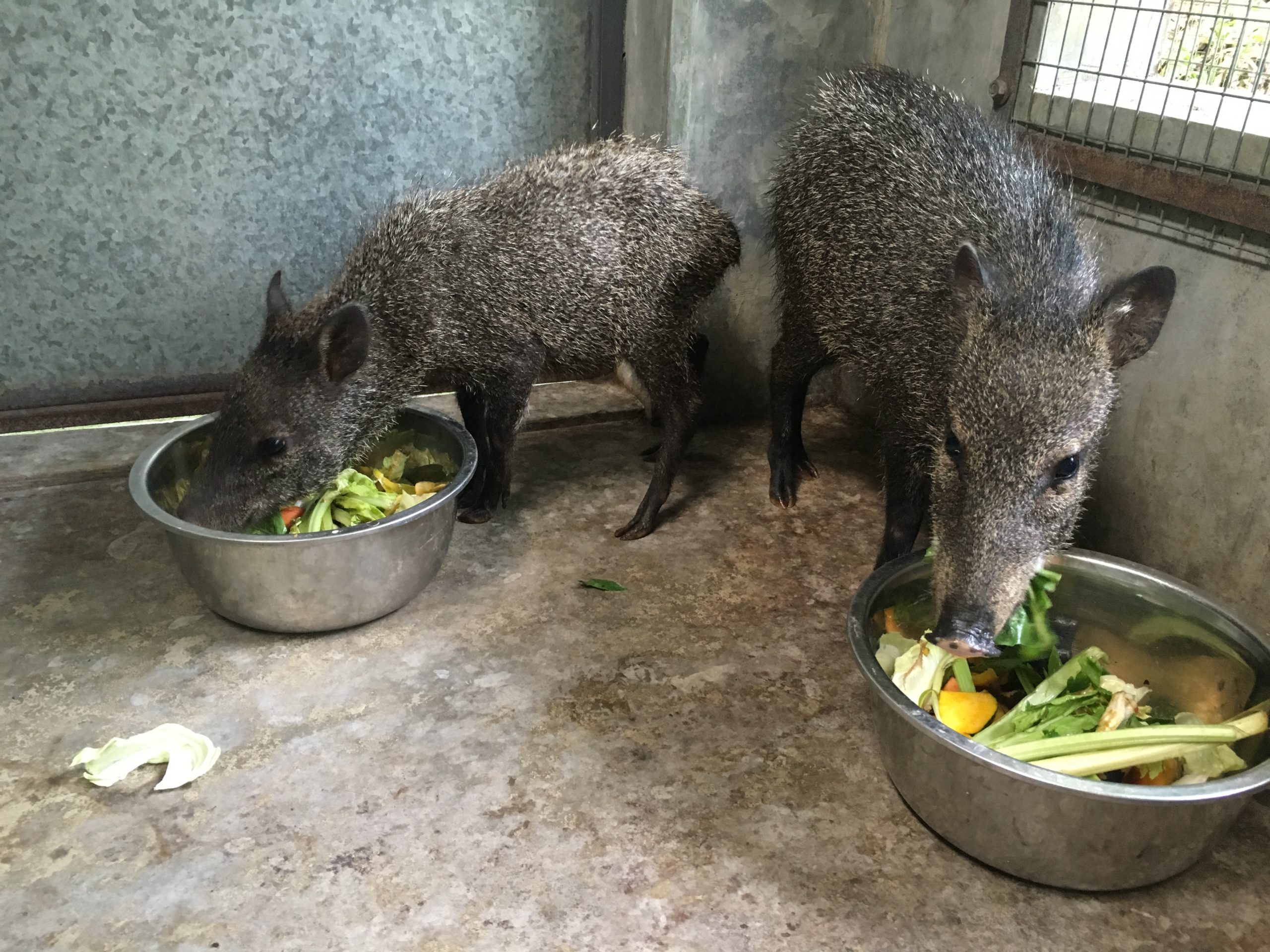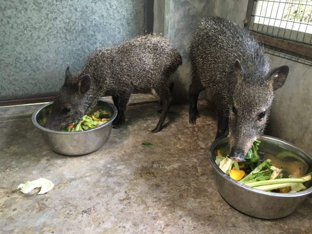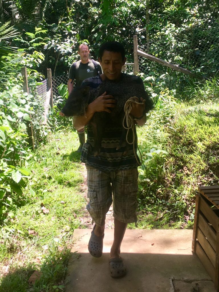 Two new juvenile male white collared peccaries, Conan and Alaric, were delivered one evening from the village. Both peccaries were settling in well at the SUSTAOH, when they were joined by another young male peccary, Maccus, after less than a week. After the medical check-up and deworming, the new peccary was introduced to the previous two. Now all three peccaries remain in the clinic where they spend every day outside the SUST OAH enjoying the fresh air, until they finished the quarantine period and join our existing peccaries in the soon to be completed new Xena enclosure.
