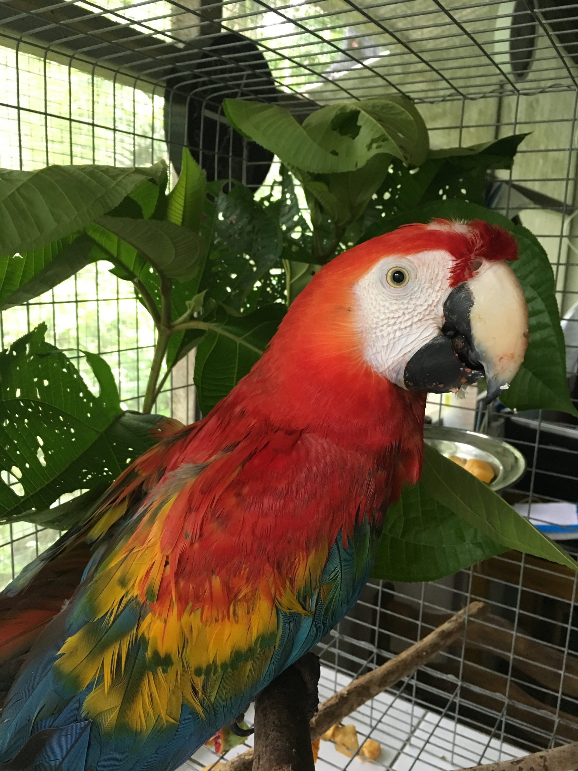 Aleesa (one of our scarlet macaws) was looking out of sorts within Pichu Aviary. She can’t fly and had several superficial wounds on her breast from falling. She is now spending some time in the SUSTAOH for monitoring. Although there appears to be no underlying issues, it is a good chance to monitor her diet and ensure she is getting the best possible care prior to returning to Pichu.