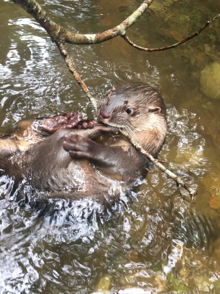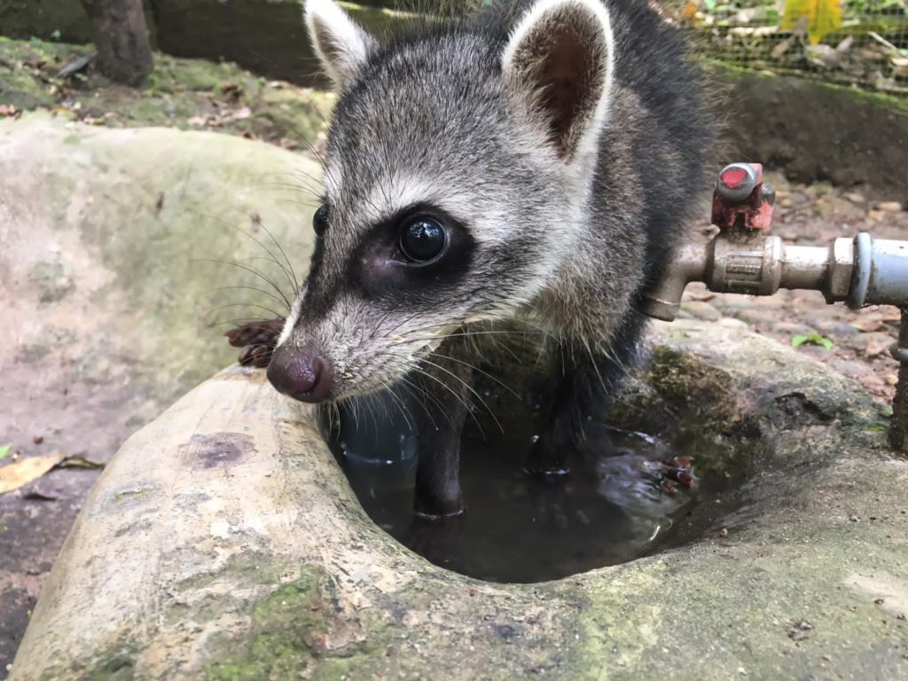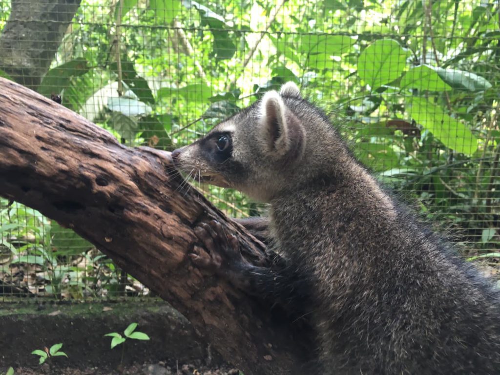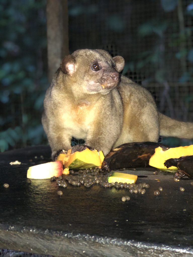 While swimming with the otter, Marlon had a gruesome discovery. After a night of heavy rainfall, he found Kiko lying dead in the small river near his house. He apparently had drowned as no further issues were discovered at the necropsy. After many years of being many volunteers favourite, Kiko will be sorely missed. He is leaving behind a beautiful daughter, now adult, and his partner Kila. Both Kila as her daughter are still showing up once in a while at the kinkajou feeding table. While Kila is unafraid of us, her daughter disappears as soon as we come closer, which is perfect as this is natural behaviour for wild kinkajous.