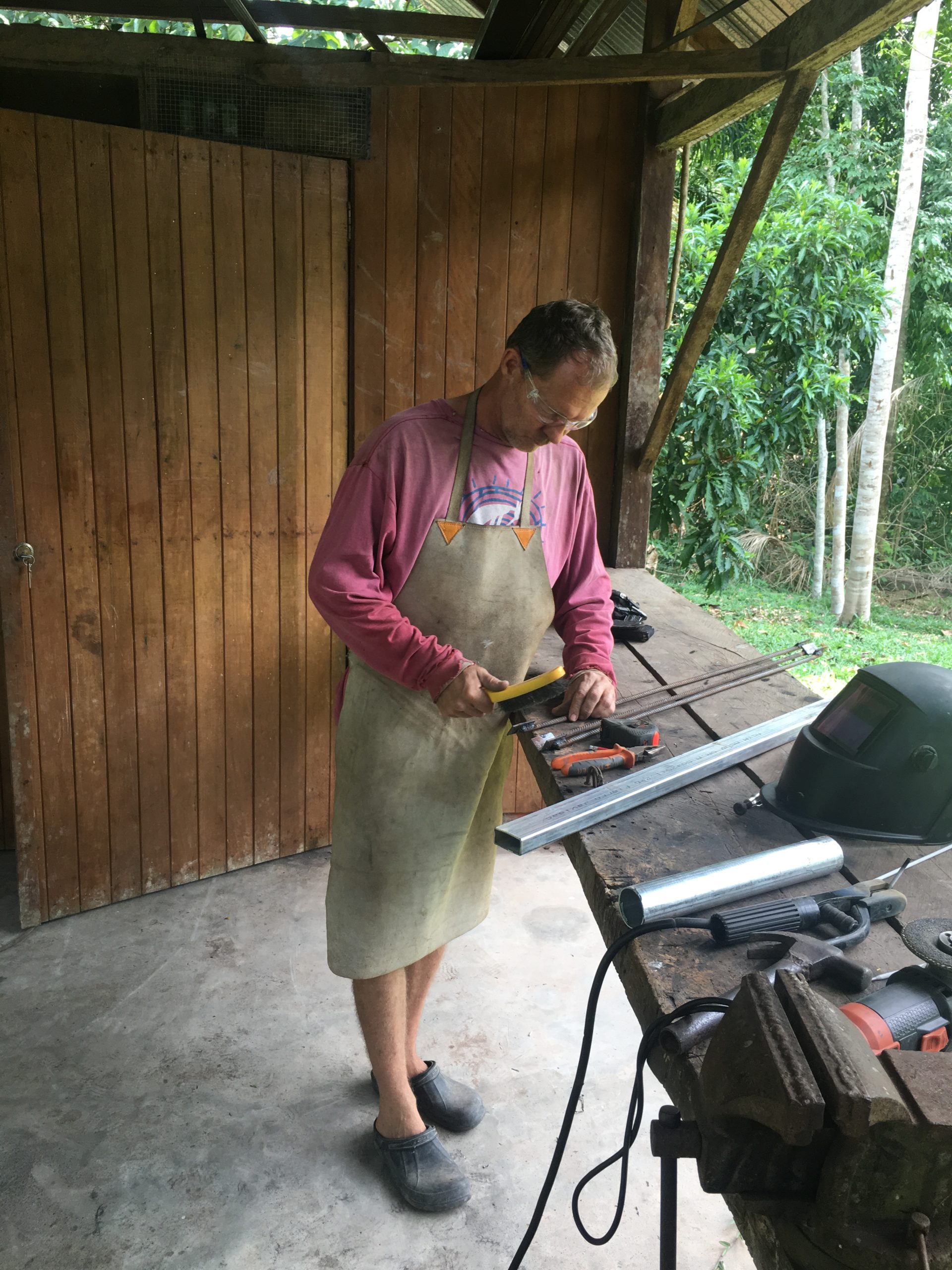 A new bridge spanning the creek to the family house and Tiliku enclosure is Douwe’s prime focus when not figuratively fighting ‘fire’ that arise on a frequent occasion. The existing bridge was washed away in a heavy downfall earlier in the year, and a fallen tree has been functioning in its place since. There is no way to know how long this tree will last, so a new bridge will be very important as it will be the only way of access to the centre for the family during the coming rain season. Douwe is pre-building the bridge in the village prior to reassembly and cementing in place when completed and shows just another talent in his already extensive repertoire.