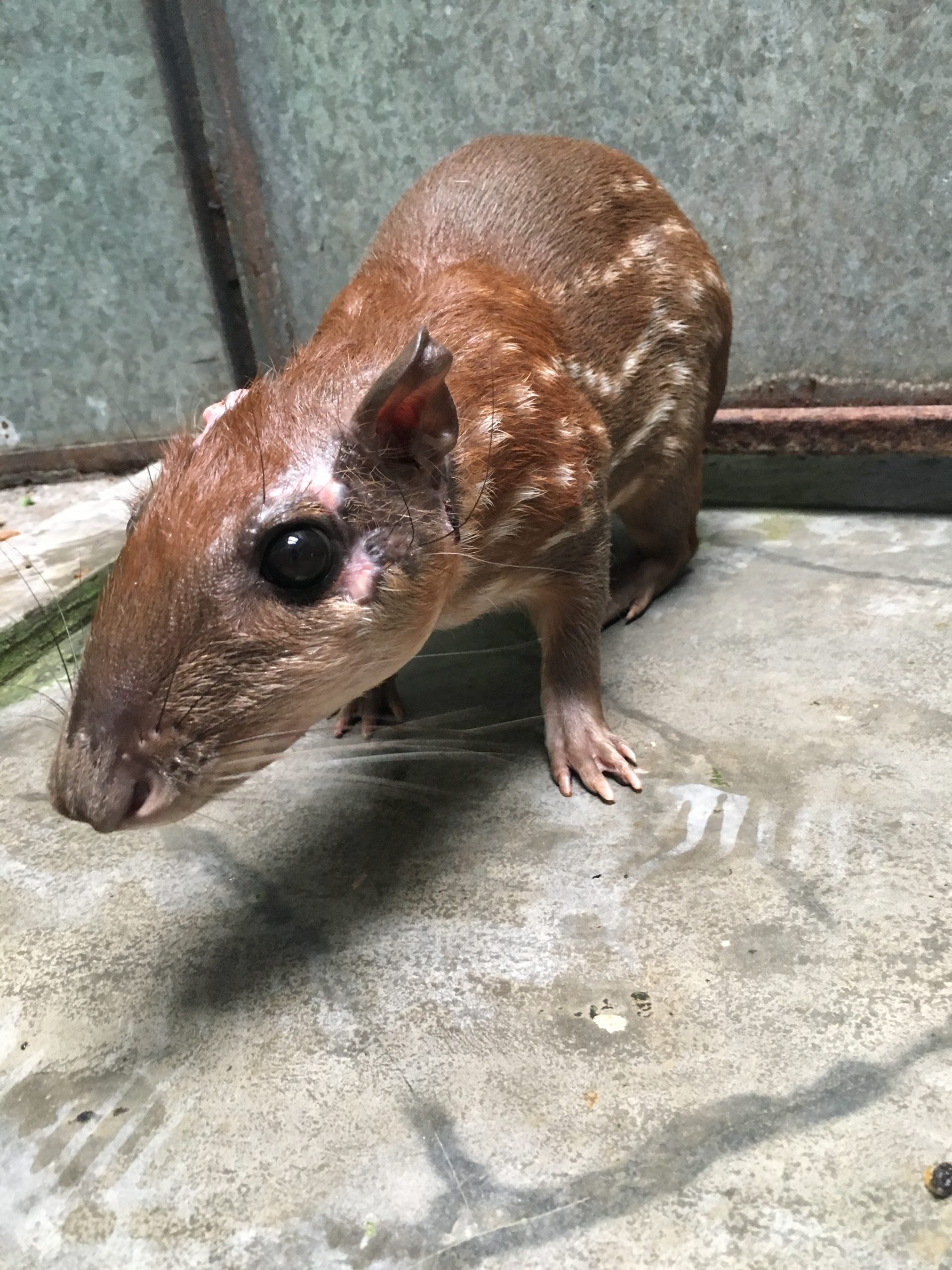 Machulin (female Paca) was being kept as a pet in Bello Horizonte. When people try to domesticate wild animals, it seems easy when they are small, but becomes too difficult as the animal grows. Machulin came to us after having had an encounter with a pet cat resulting in one of her ears now missing. Like the previous pacas, Machulin has a good chance in the wild again, and will be rehabilitated for her release.