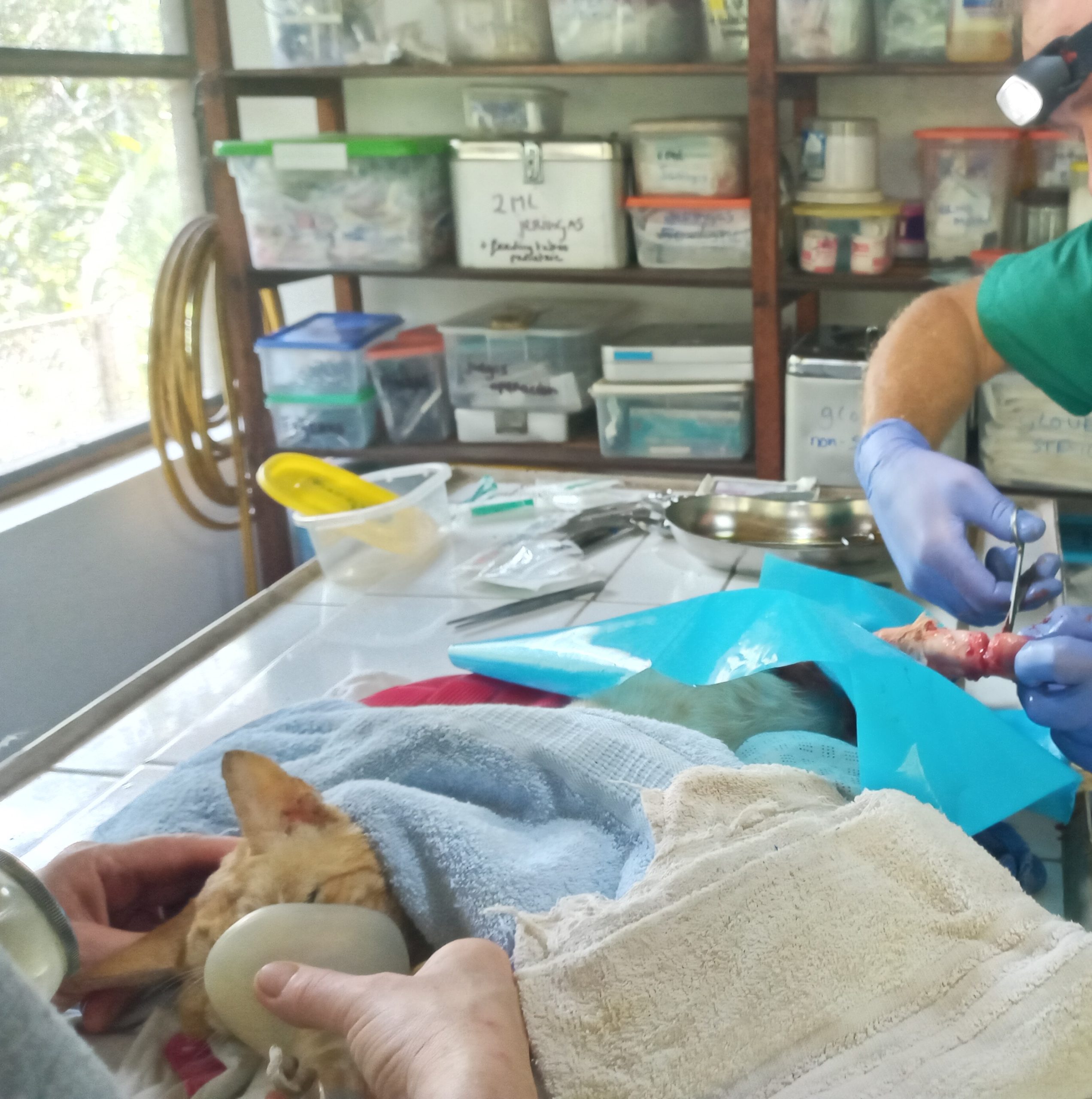 It is amazing how many things can be achieved when need arises. One of the village cats, a male Tricki, was found with an injured leg needing amputation. Although no owner could be found, Enrique, our temporary emergency volunteer from Pucallpa stepped up and took the responsibility for another cat to add to his ever increasing “pride”. A couple of days recuperating in the SUSTAOH after the surgery, the cat went with his new owners, Enrique and Marji, to Pucallpa where he is settling in well and isn’t letting his missing leg slow him down at all.