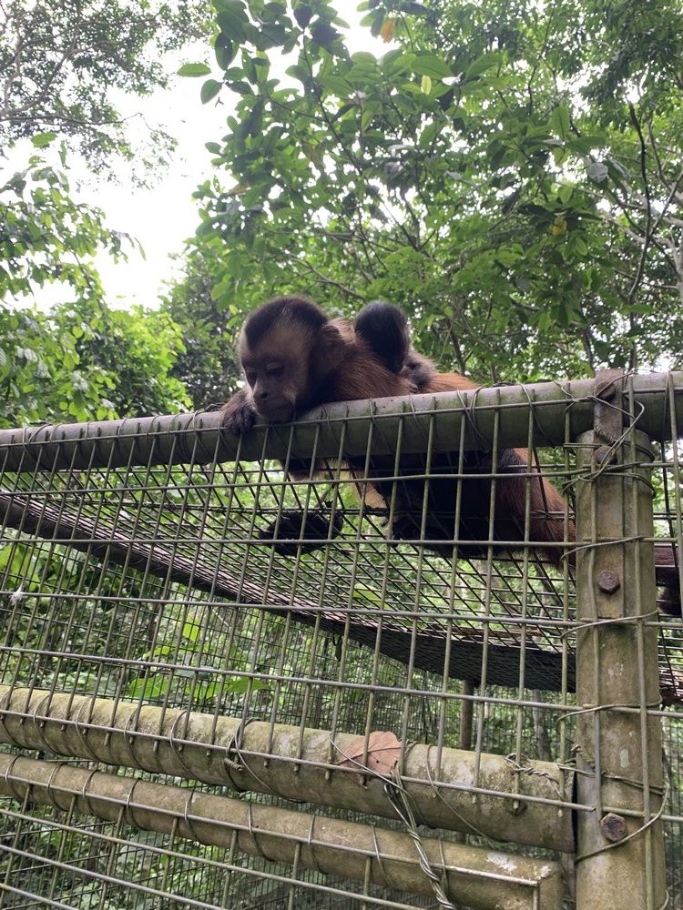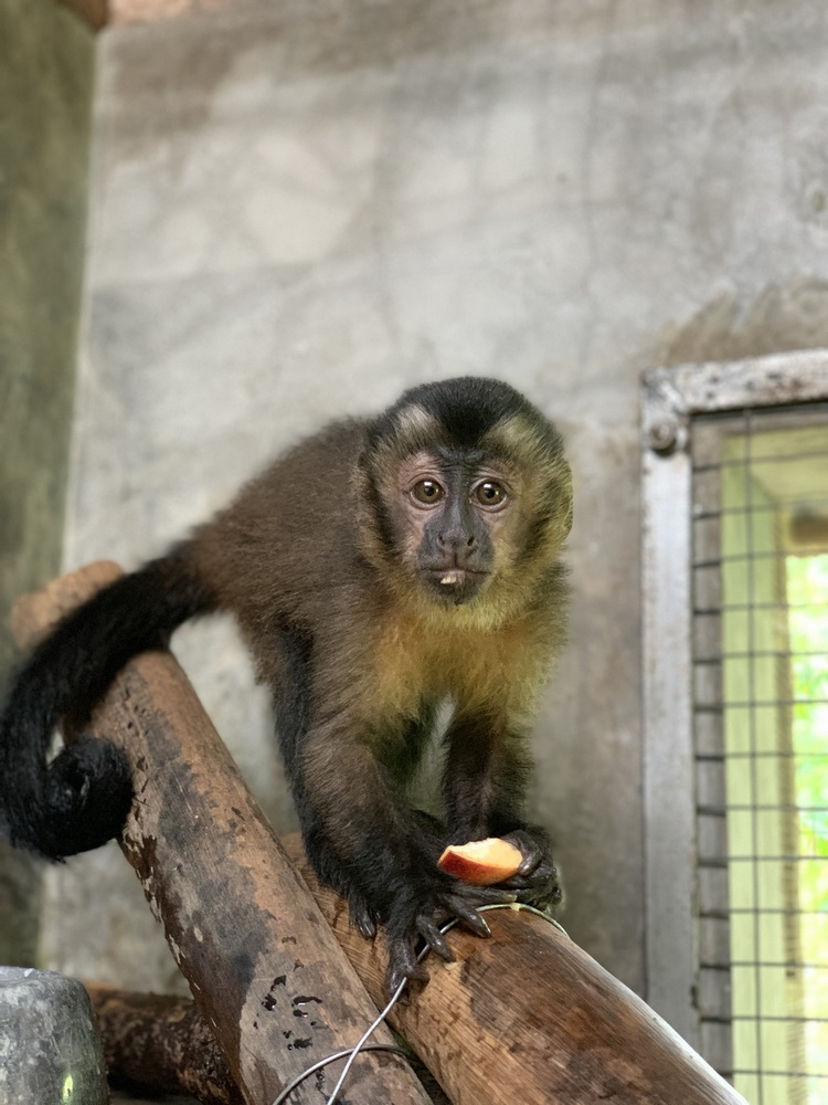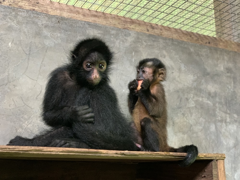 We had a visit towards the end of the month from the ministry, but from a different location to our normal avenue of new arrivals. With them came two new young male spider monkeys of 3 months, named Miyo, and Ashuke of 12 months respectively and Rasu, a young large headed capuchin male of 5 months. Both older monkeys are enjoying each other’s company, whereas the smaller spider monkey is in a small cage and where possible is being ‘mothered’ by whoever is fortunate enough to be working in the SUSTOAH on any given day. All monkeys were formally being kept as pets or in the case of the capuchin seized prior to being sold.