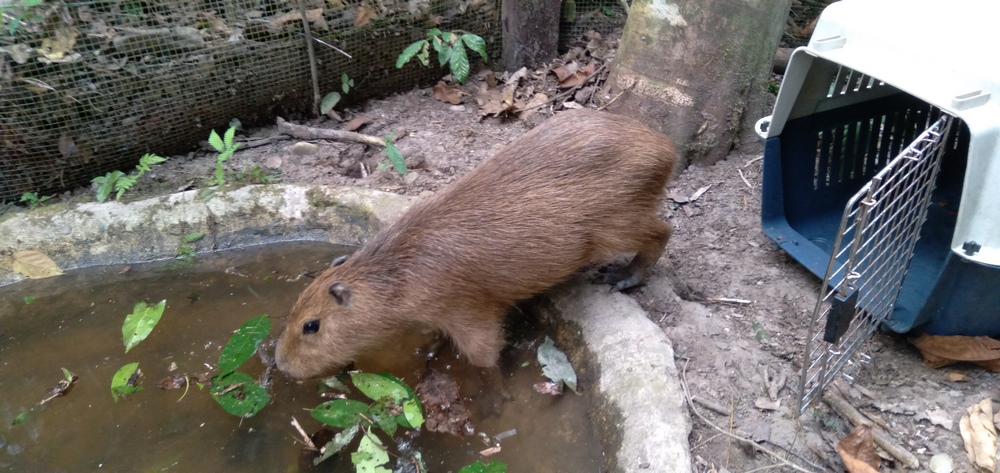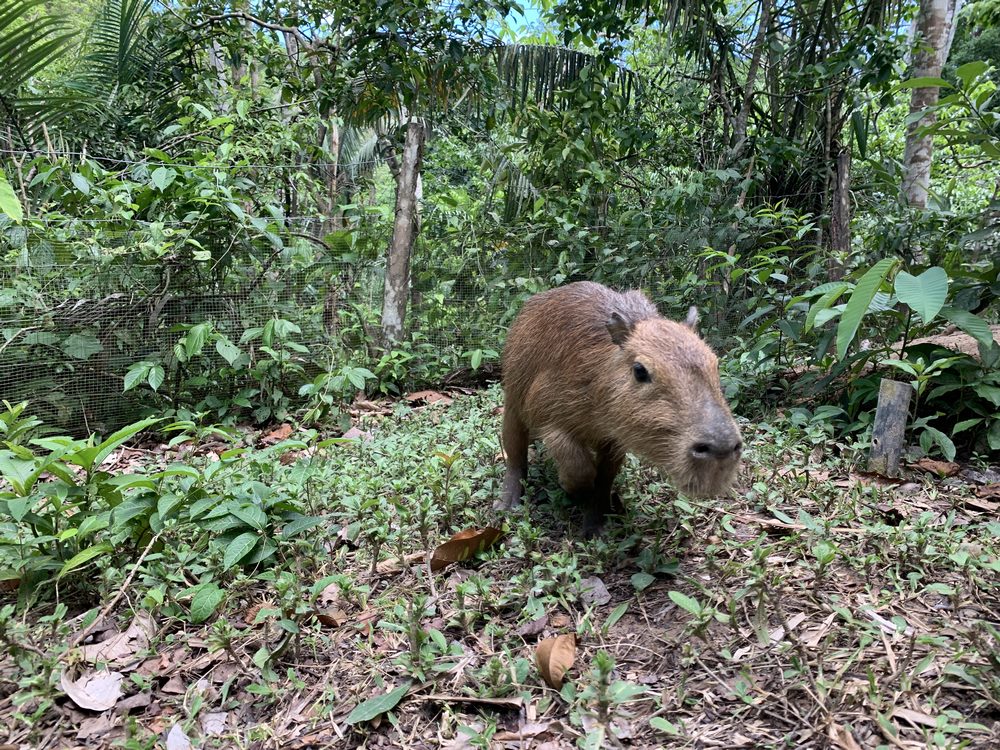 Bronco, the male capybara has settled well into the Momo enclosure and is lavishing in the attention on offer from anyone with five minutes to spare. The fact that he has spent most of his life as a pet and is unable to be released means that our strict “No Touch” policy will not apply in this case. It is difficult to see who enjoys the “petting” more, but the noises Bronco makes suggests he is definitely enjoying it.