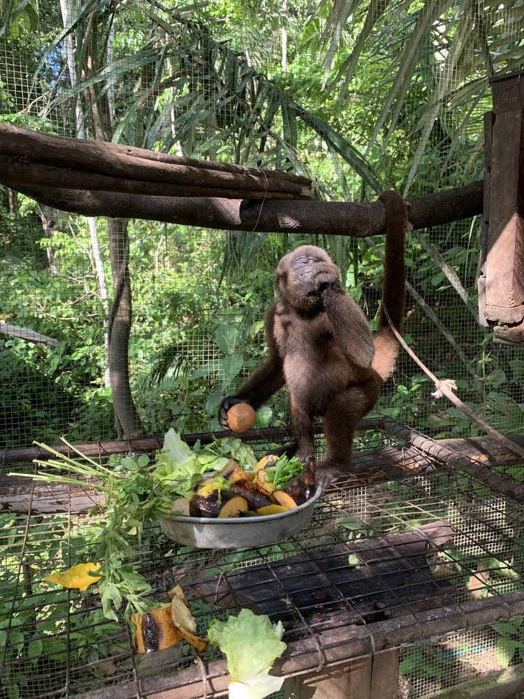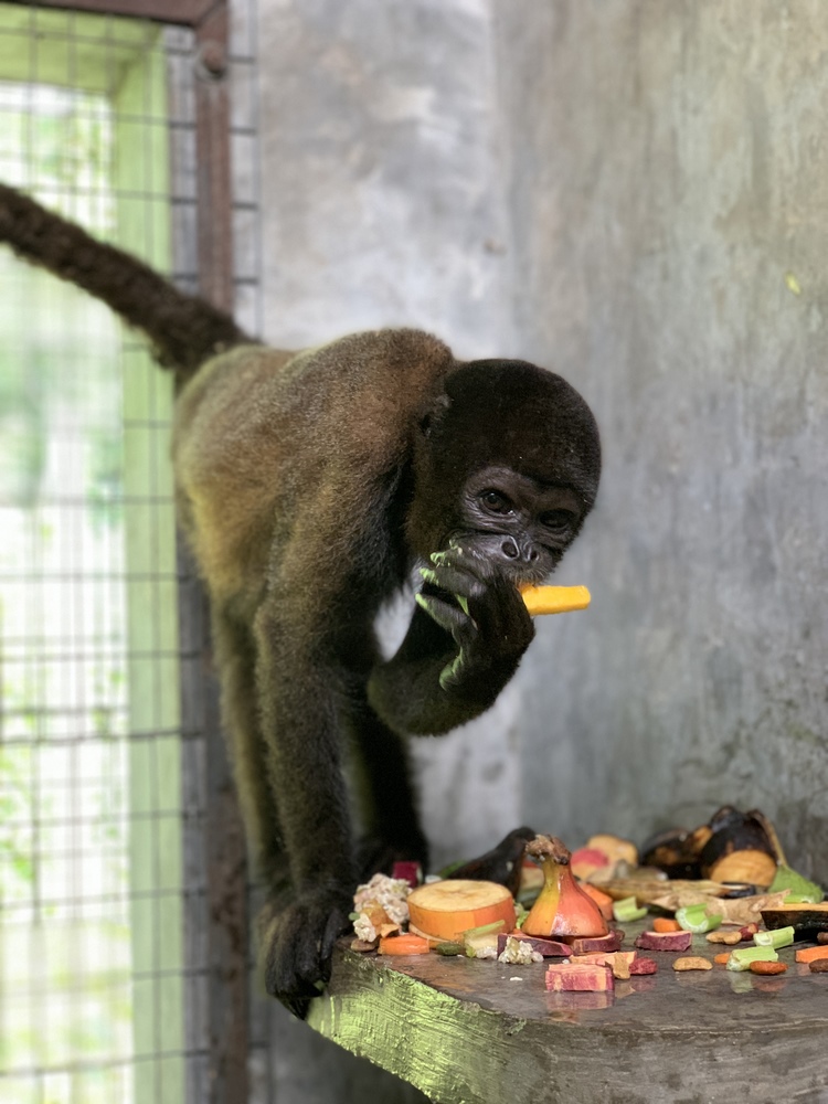 Another monkey joining Moyo and Panchin within Lulu enclosure was Darwin, our young adult male Jurua red howler monkey. Darwin, along with all the other animals are needing to adapt to the excitement of having unfamiliar and new people around after the better part of a year with very few new faces. Darwin hasn’t handled the transition so well and in conjunction with a seemingly coming of age showed too much exuberance to one of our new volunteers resulting to a bite to her ankle. Douwe (alpha male primate second only to Olivia 😉) was on hand to intervene but Darwin’s normal playful demeanour had a more determined nature. Darwin is currently residing with Moyo while Olivia investigates further and corresponds with other animal rescue centres on the best way to deal with an amorous adult male howler monkey.
