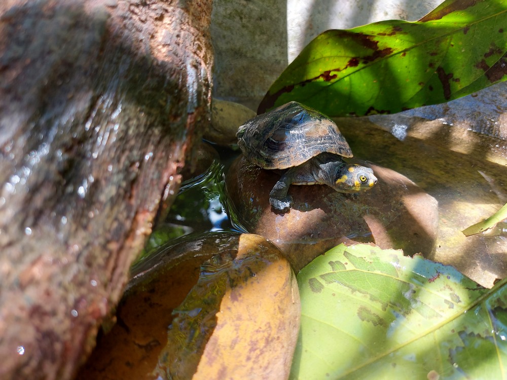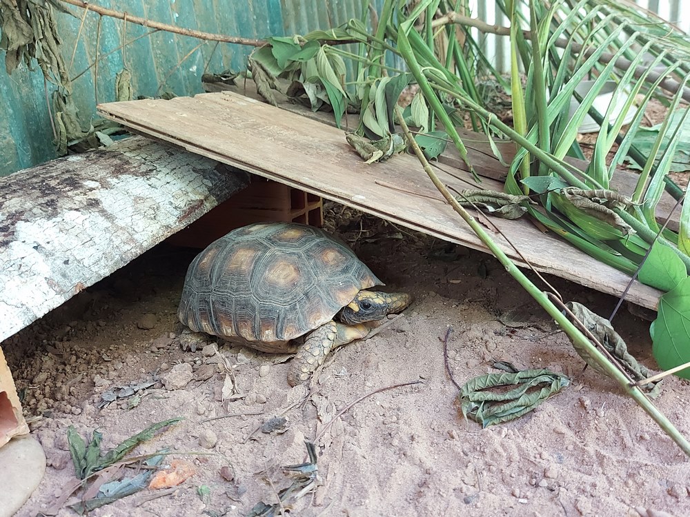 Two new yellow footed tortoises were left to us from the nearby village of Bello Horizonte. Often it is due to concern for their well-being that people hand over tortoises as they are still a welcome addition to local dinner tables. After a brief stay to ensure there are no ongoing health issues, both tortoises will be released into the relative safety of the small creek that runs through the centre of Esperanza Verde.