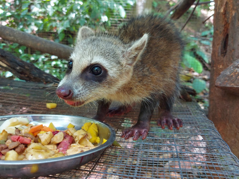 Takido our newest crab eating raccoon is progressing in leaps and bounds (quite literally) with his weight and independence improving constantly. Takido moved into the more spacious Pepe enclosure and is making the progression to solid foods. Fresh fish certainly appears to be a new favourite. Takido will now stay in Pepe enclosure until he is of a size sufficient to be released. In the interim he is being taken for regular evening walks by volunteers to familiarise himself with his new home.