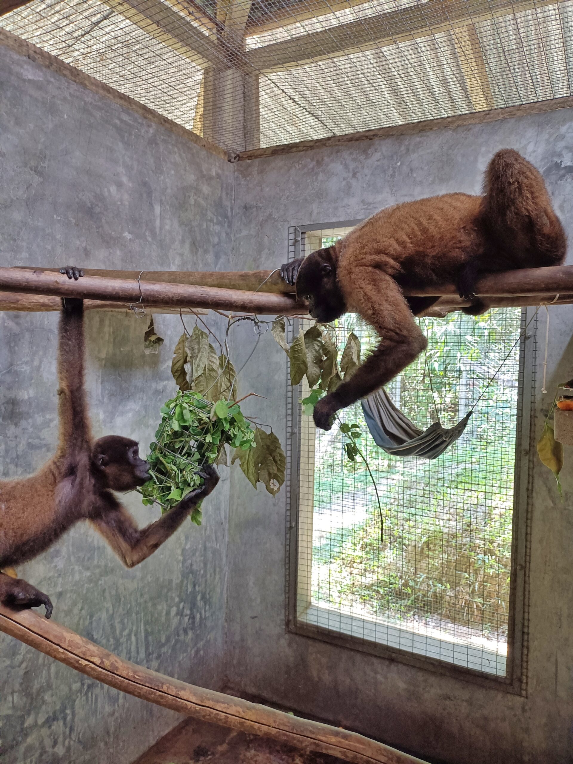 Panchin and Almira, male and female woolly monkeys, recently experienced some unusual behaviour. After two weeks of attentive care in our clinic of controlled diets, and treatment, they’ve made a full recovery and rejoined the lively semi-captive group, which now boasts a total of 14 woolly monkeys.