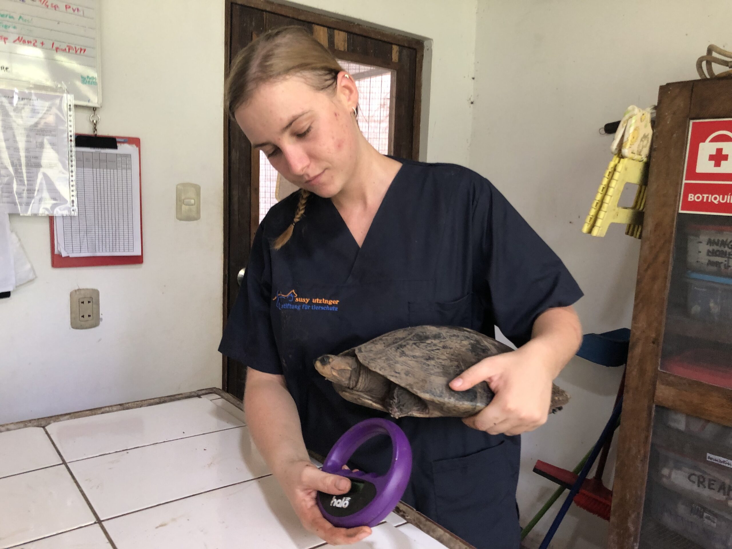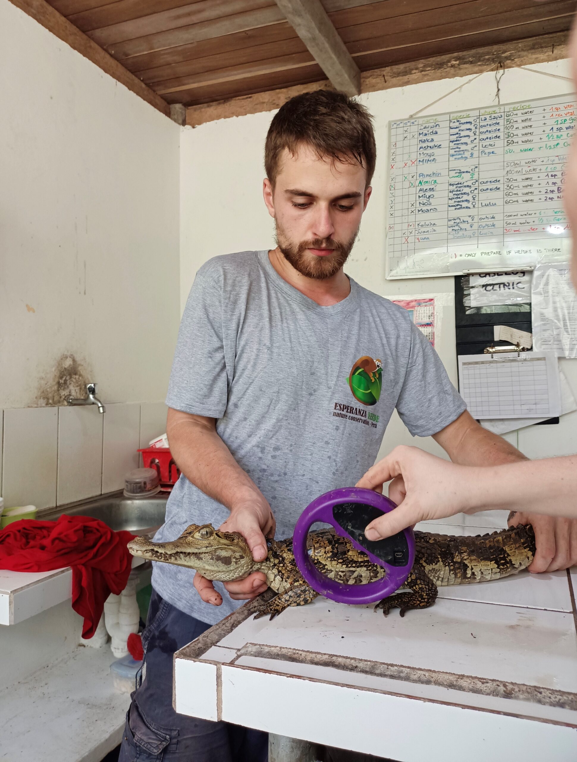 Due to a prolonged drought, we took the opportunity to refresh and maintain the pond in the reptile enclosure. The yellow-spotted river turtles, or Taricayas (their local name), received a clean bill of health from our dedicated vet, Carlotta, and were returned to their rejuvenated pond. As an unexpected surprise, we found one of the spectacled (white) caimans, released more than a year ago, living in the pond. An exciting discovery for our volunteers and staff!
